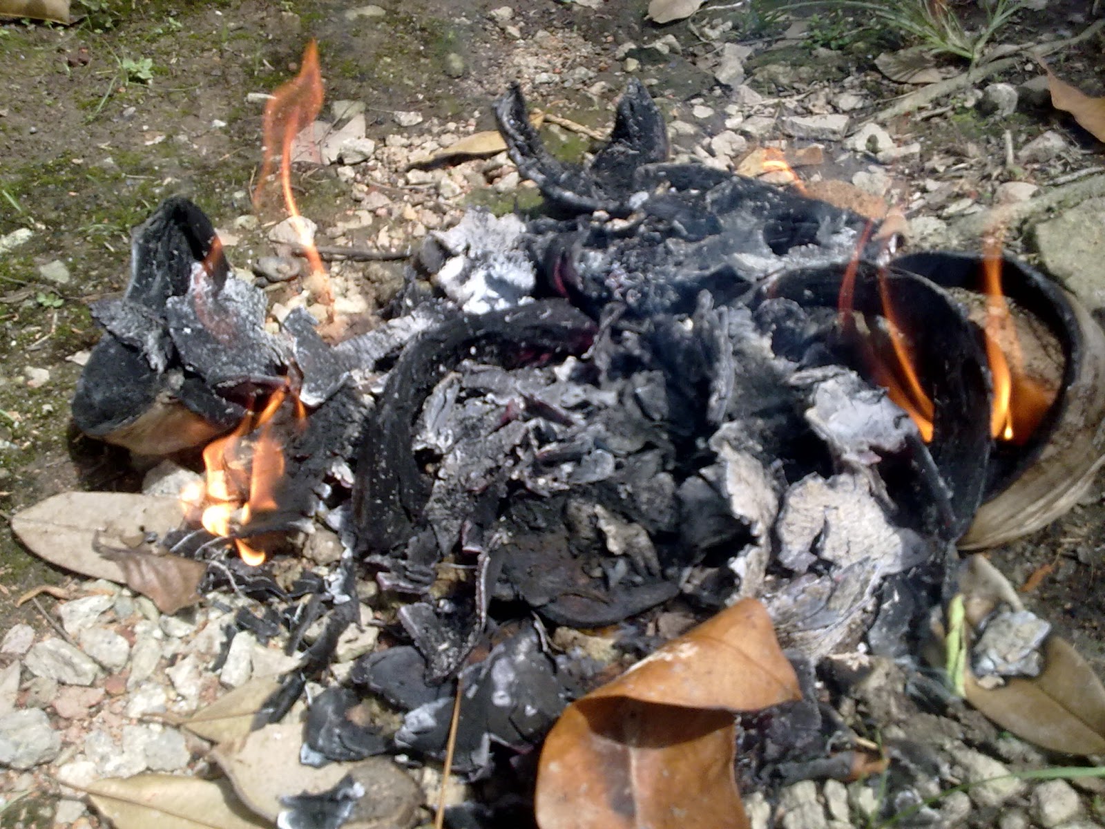 sabut kelapa bahan terbaik nak bakar api. tempurung tu jadi bara..hehe